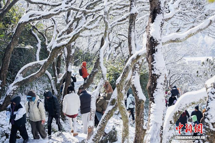 不日,位于浙江台州的华顶邦家丛林花园雪景。2026年献岁伊初,海拔1098米的华顶山颠化身为银拆素裹的“冰雪王邦”,比比皆是的雾凇异景取云海、古木接相照映,吸收了浩繁旅客前去赏景、玩雪,感触感染冬季奇特的魅力。罗教成 摄