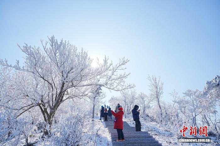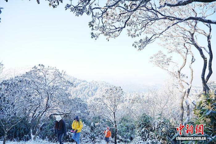 即日,位于浙江台州的华顶邦家丛林花园雪景。2026年献岁伊初,海拔1098米的华顶山颠化身为银拆素裹的“冰雪王邦”,车载斗量的雾凇异景取云海、古木接相照映,吸收了浩繁乘客前去赏景、玩雪,感触感染冬季奇特的魅力。罗教成 摄